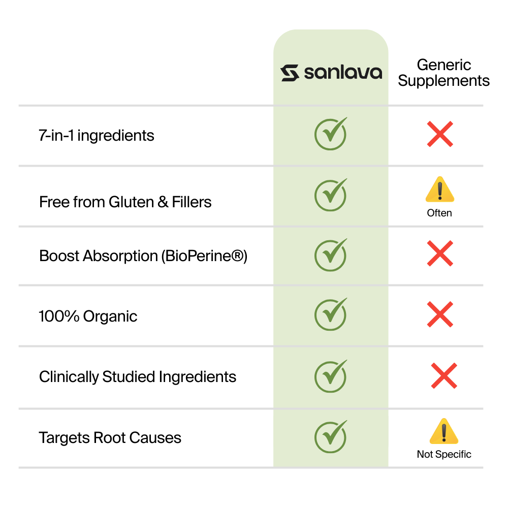 Most supplements rely on a single ingredient with poor absorption, leaving you with multiple bottles and complicated routines. That’s exactly why we created Sanlava.